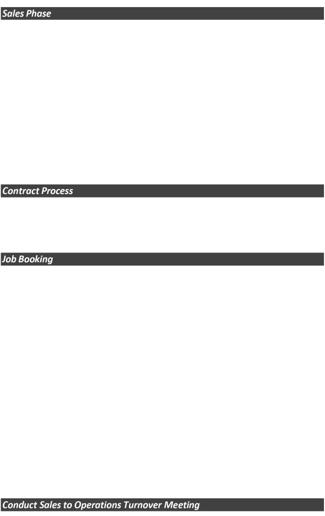 The Second Step is to list all the tasks needed around a project flow cycle from receiving a sales lead to the service phase.